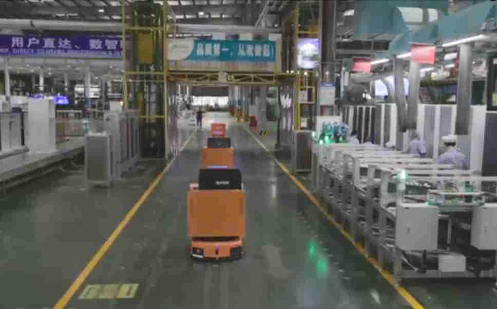 为车载冰箱物流配送打造的智能解决方案,,,包含产中物流通过潜伏举升AMR搬运至线边,,产后成品物流智能仓储,,,流程包含产中物流智能齐套入库,,线边安灯叫料AMR智能配送至线边,,成品入库、、、出库,,通过无人堆高车机器人,,智能仓储管理替代人工作业管理,,实现更高存储、、、更高效率、、更具柔性化的解决方案。。