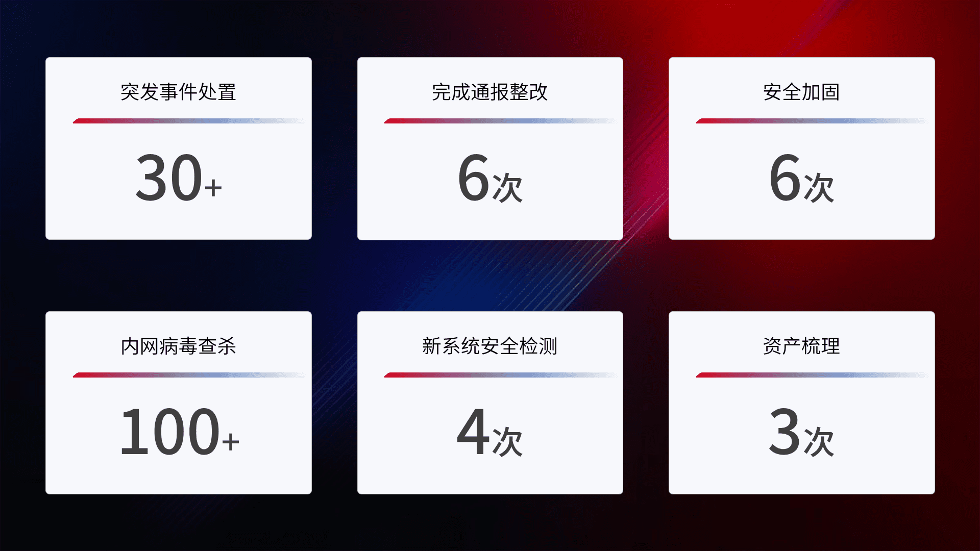 网络安全加固与风险管理:通过技术加固手段,,,,如加强区域隔离,,缩减攻击内网横向移动的范围;优化现有网络安全管理制度,,,,降低网络威胁暴露面,,,减少被黑客攻击的可能性。。